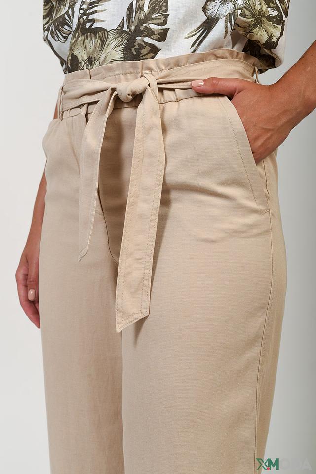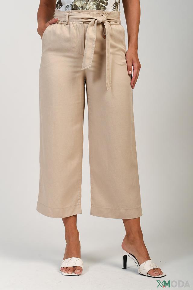 Бежевые брюки-кюлоты от Bianca – стильное и комфортное решение для создания модных образов. Модель выполнена из лёгкой ткани на основе лиоцела и льна, имеет завышенную талию и пояс с завязками. Состав: лиоцел 79%, лен 21%