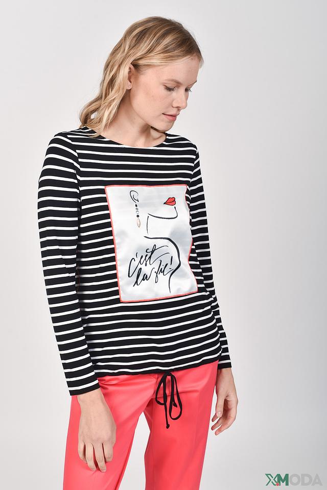 Особый акцент в этом лонгсливе – яркий принт с изображением лица и надписью "C'est la vie!". Этот принт добавляет образу оригинальности и индивидуальности.