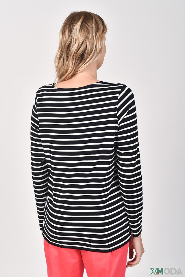 Этот стильный лонгслив от Bianca станет отличным дополнением к вашему гардеробу. Модель выполнена в классическую чёрно-белую полоску, что делает её универсальной и легко сочетаемой с другими вещами.