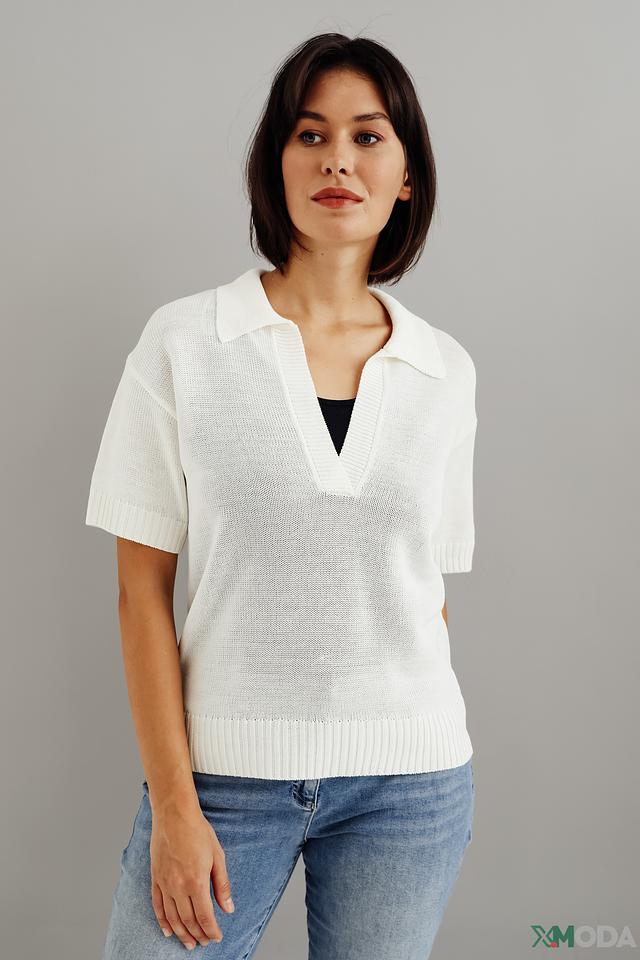 Белый пуловер от Bianca с короткими рукавами и воротником-поло станет отличным дополнением к вашему гардеробу. Модель выполнена из мягкой и приятной к телу вискозы, обеспечивая комфорт в течение всего дня. Состав: вискоза 65%, полиамид 35%