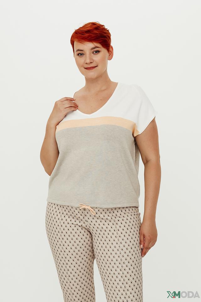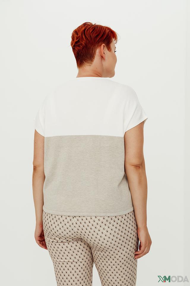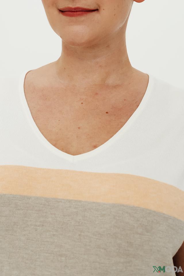 Женский пуловер Bianca бежевого и белого цвета с цветовым блоком. Модель выполнена из мягкой вискозы с добавлением полиамида, что обеспечивает комфорт и приятные тактильные ощущения. Состав: вискоза 70%, полиамид 30%