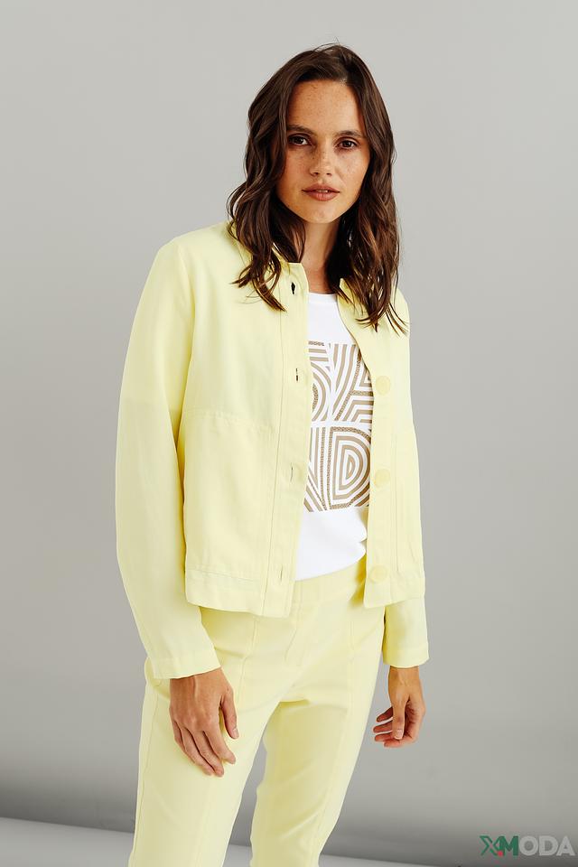 Жакет Bianca лимонного цвета — стильная и современная модель приталенного силуэта. Жакет выполнен из лёгкой ткани на основе лиоцела и льна, что обеспечивает комфорт в носке. Застёжка на пуговицах. Состав: лиоцел 77%, лен 23%