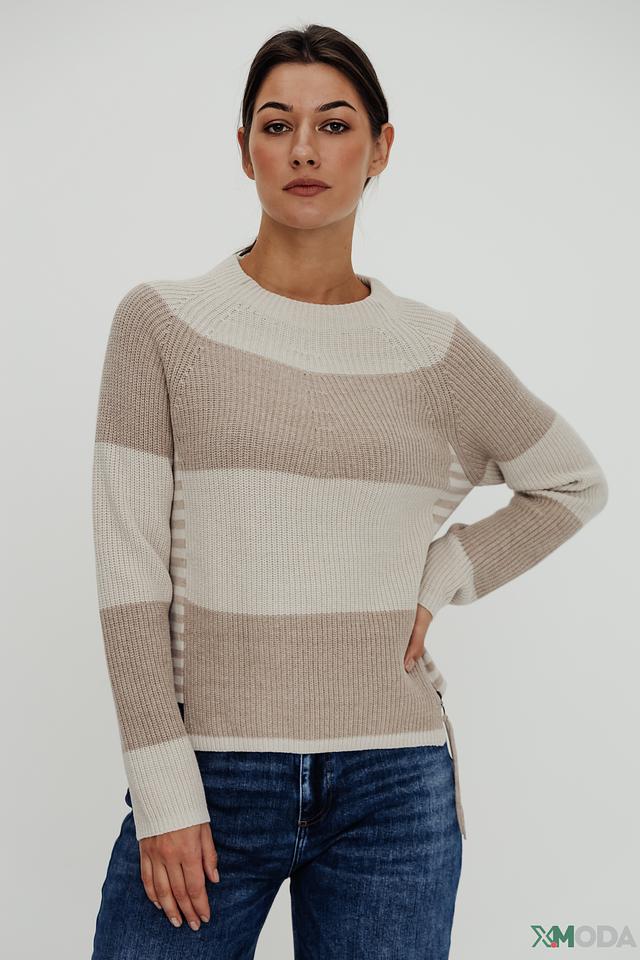 Бежевый пуловер Bianca с горизонтальными полосами – стильная и комфортная модель для повседневного гардероба. Изготовлен из мягкого сочетания хлопка и полиакрила, обеспечивающего приятные тактильные ощущения и удобство в носке. Состав: хлопок 60%, полиакрил 40%