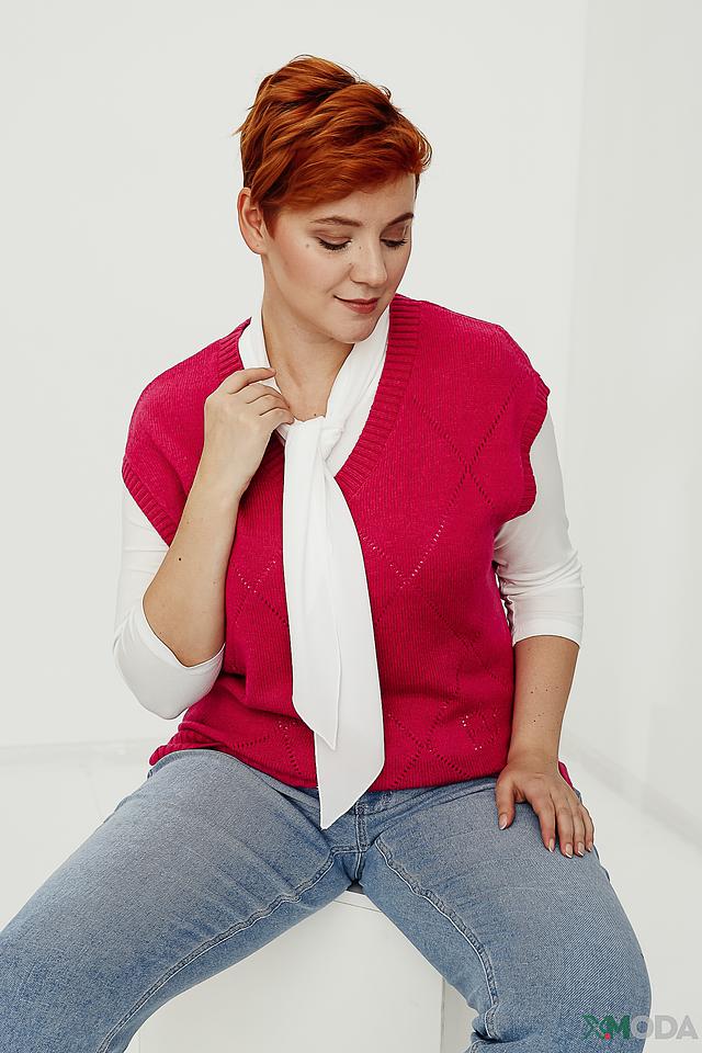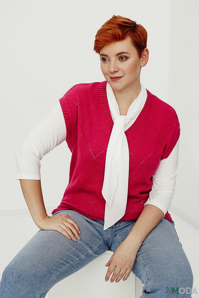 Этот стильный жилет от Bianca выполнен из мягкого и приятного к телу трикотажа. Преобладающий цвет – насыщенный малиновый, который добавит яркости и женственности вашему образу.