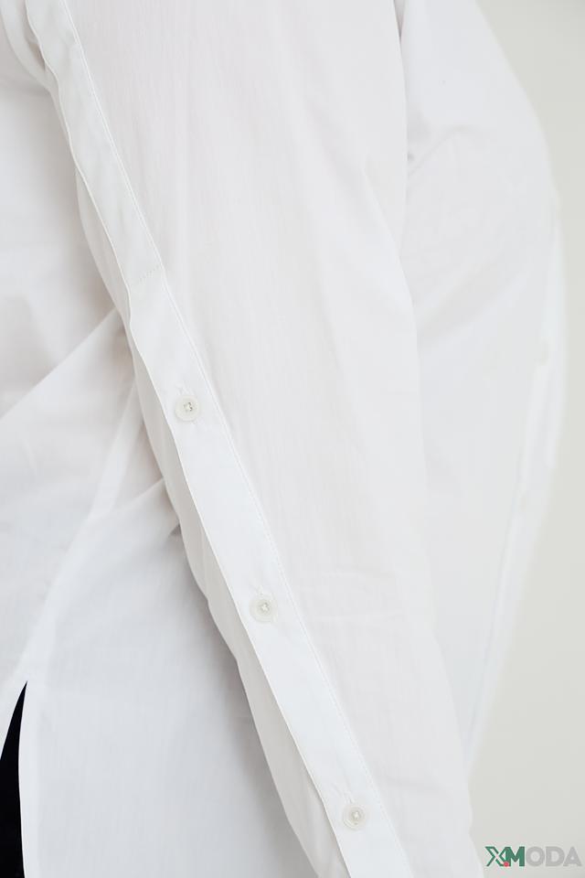 Рубашка имеет длинные рукава с манжетами на пуговицах, воротник и застежку спереди на пуговицы. На груди расположен накладной карман. Благодаря своему универсальному дизайну, эта рубашка легко сочетается с различными предметами одежды – от брюк и юбок до джинсов.