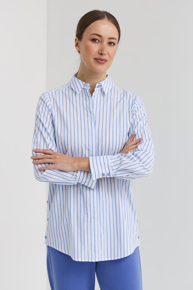 Рубашка Bianca голубого цвета в классическую полоску – это стильное и универсальное решение для создания повседневных образов. Модель выполнена из хлопка с добавлением полиамида и эластана, что обеспечивает комфорт и удобство в носке. Состав: хлопок 72%, полиамид 25%, эластан 3%