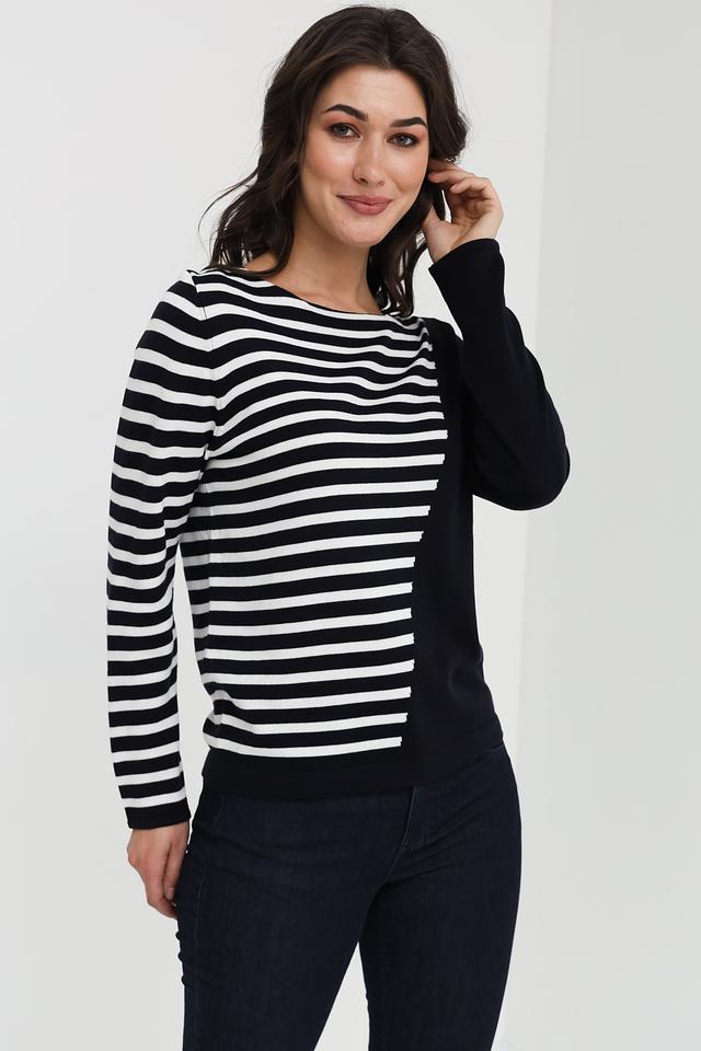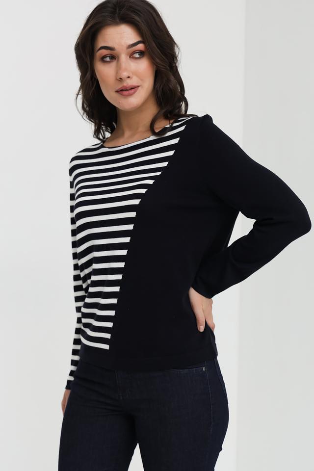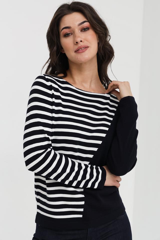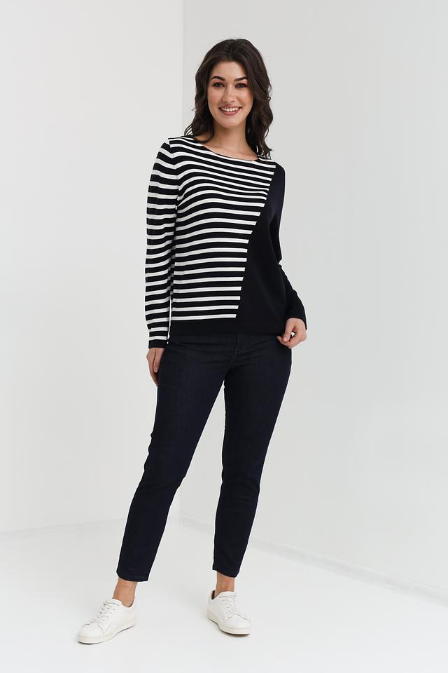 Женский пуловер Bianca чёрно-белого цвета с полосатым дизайном. Модель выполнена из мягкого и приятного к телу сочетания полиакрила и хлопка, обеспечивая комфорт в носке. Состав: полиакрил 55%, хлопок 45%