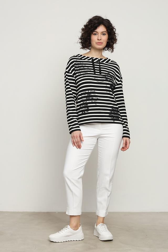 Состав ткани: 52% хлопок, 45% полиэстер, 3% эластан. Хлопок обеспечивает мягкость и воздухопроницаемость, полиэстер – износостойкость и сохранение формы, а эластан – комфортную посадку и свободу движений. Эти брюки сочетают в себе стиль, удобство и практичность.