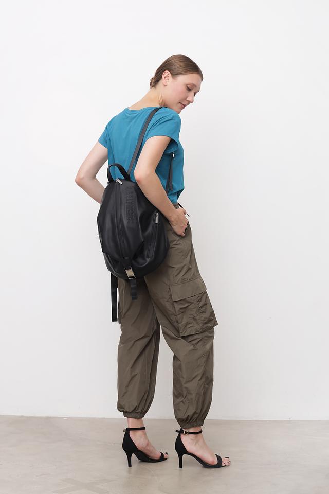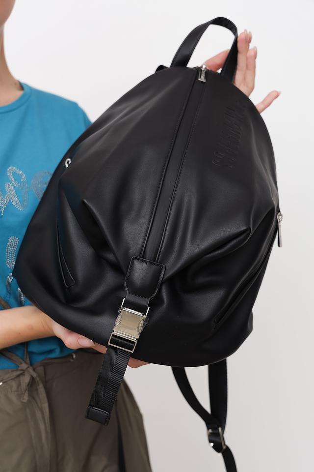 Рюкзак изготовлен из высококачественного полиуретана, что обеспечивает его долговечность и устойчивость к износу. Внешняя поверхность имеет гладкую текстуру. Модель оснащена удобной молнией, обеспечивающей легкий доступ к содержимому.