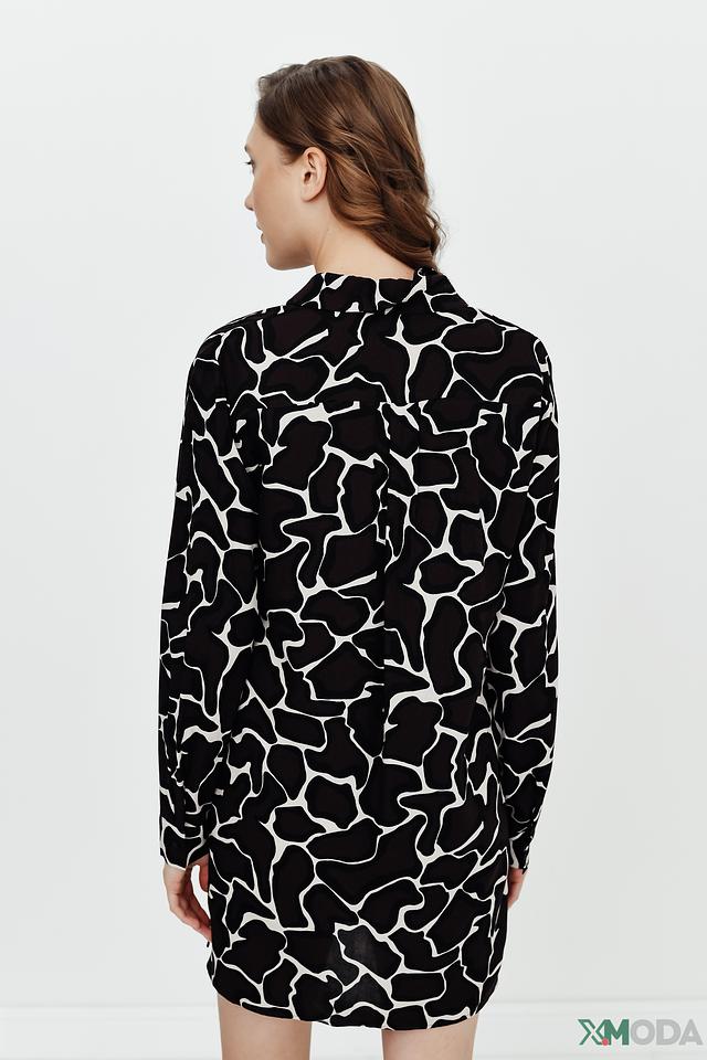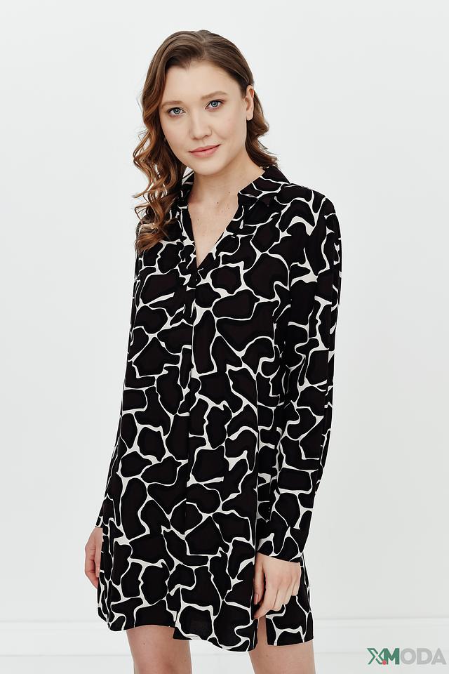 Особенностью этой блузы является оригинальный принт в чёрно-белой гамме, который добавляет ей индивидуальности и стиля. Она идеально подходит для создания как повседневных, так и более нарядных образов. Состав: 100% вискоза.