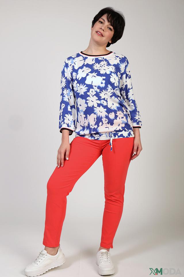 Блуза имеет свободный крой, который не сковывает движения и обеспечивает комфорт в течение всего дня. Округлый вырез горловины и короткие рукава делают ее идеальной для теплой погоды. Яркий цветочный принт добавляет образу женственности и легкости.