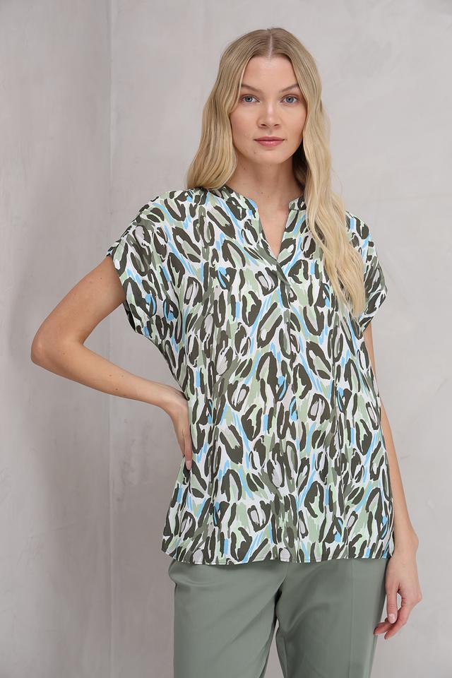 Блуза Bianca зеленого и голубого цвета с оригинальным леопардовым принтом. Изготовлена из 100% вискозы, обеспечивающей комфорт и приятные ощущения при носке. Отличный выбор для создания стильного и легкого образа. Состав: вискоза 100%