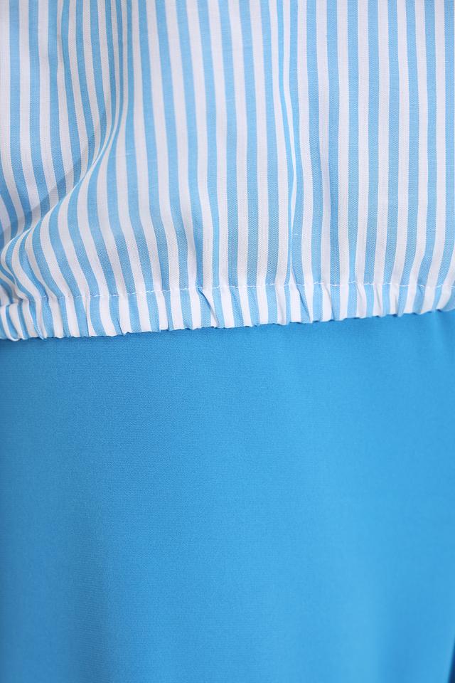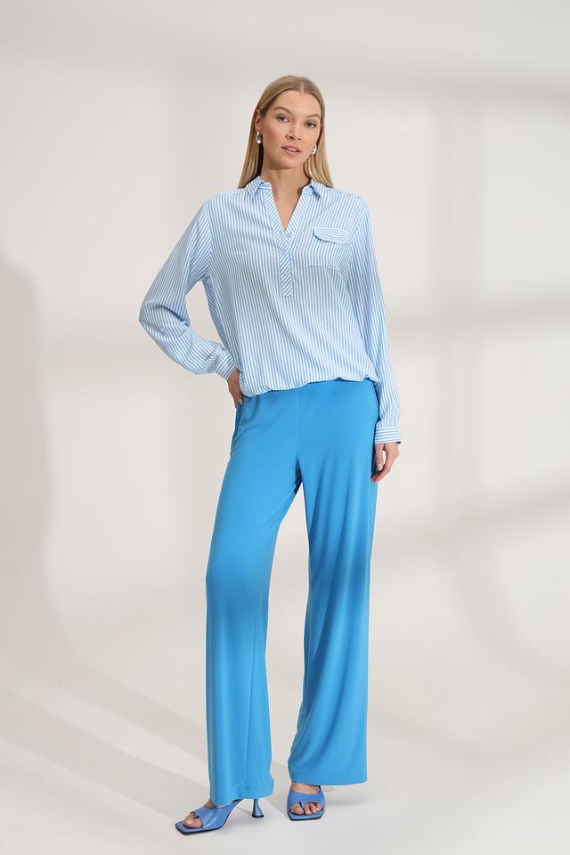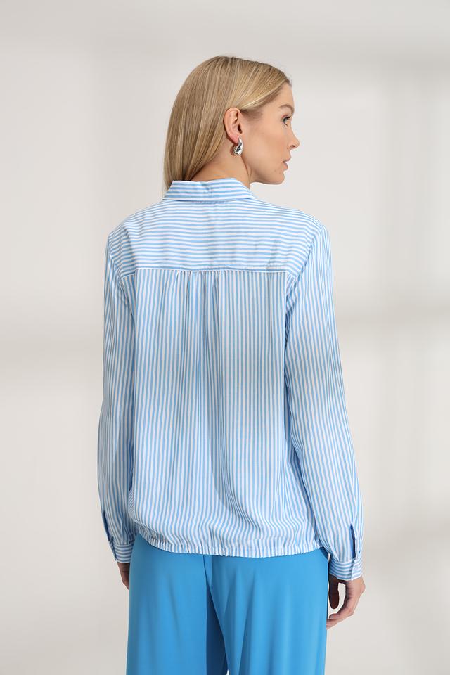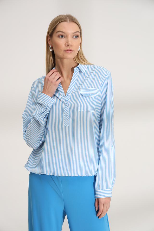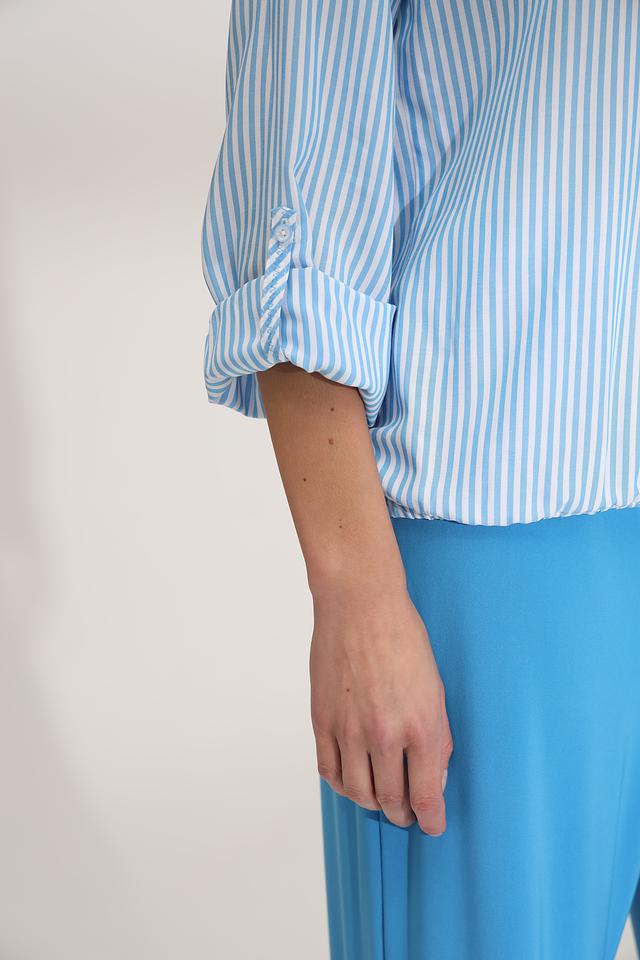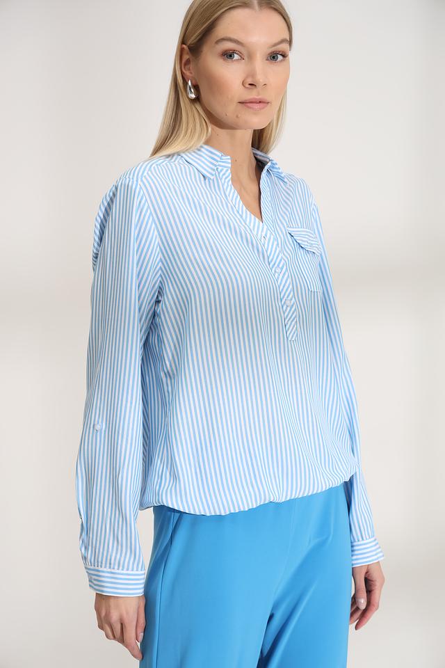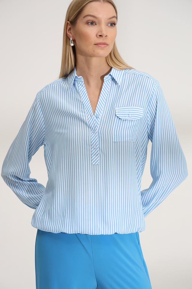 Голубая полоска придает блузе свежий и легкий вид, делая ее идеальным выбором для создания повседневных образов. Блуза хорошо сочетается с брюками, юбками и джинсами.