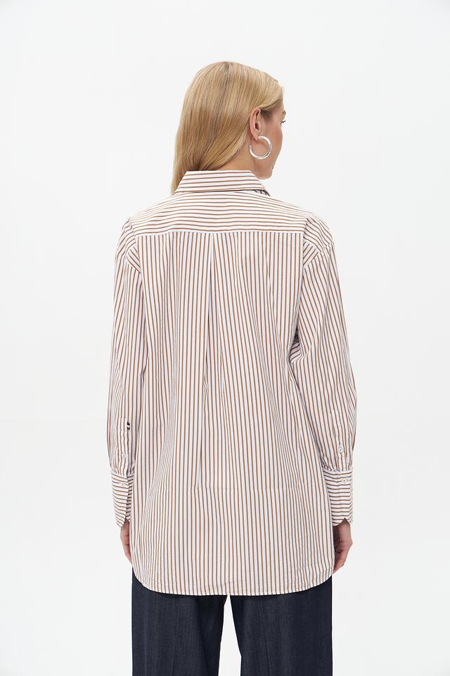 Бежевая блузка Bugatti с вертикальной полоской из 100% хлопка. Классический крой, длинные рукава и воротник рубашечного типа делают эту модель универсальной основой для создания стильных образов. Состав: хлопок 100%