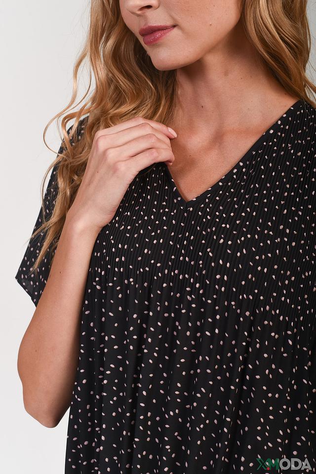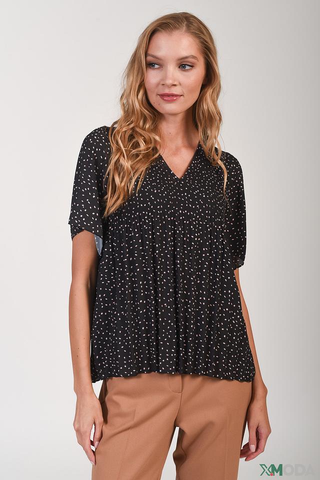 Чёрная блуза Cinque с мелким белым горохом – стильная и лёгкая модель с V-образным вырезом и короткими рукавами. Идеально подойдёт для создания повседневных образов. Состав: полиэстер 100%