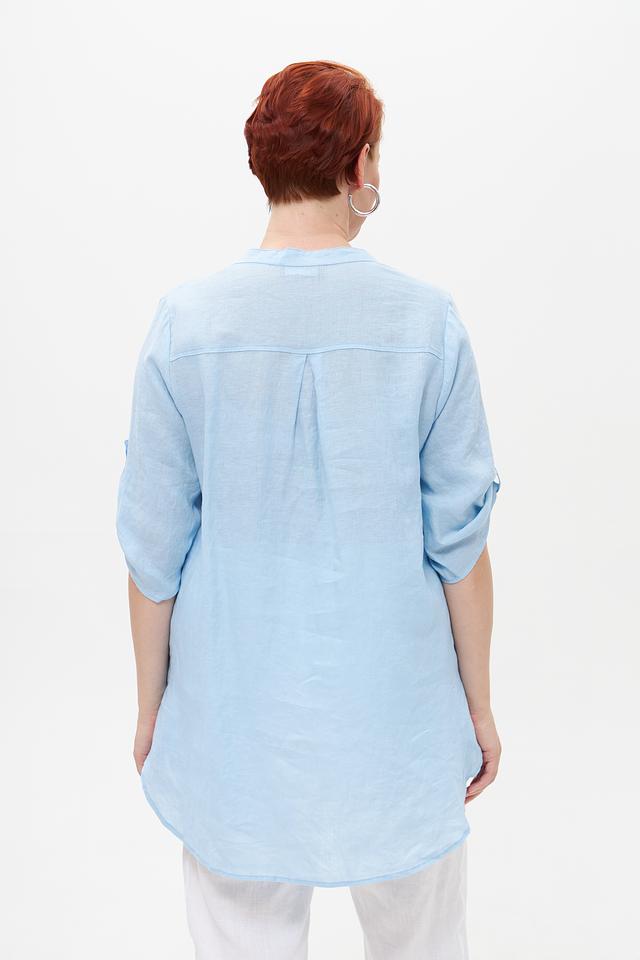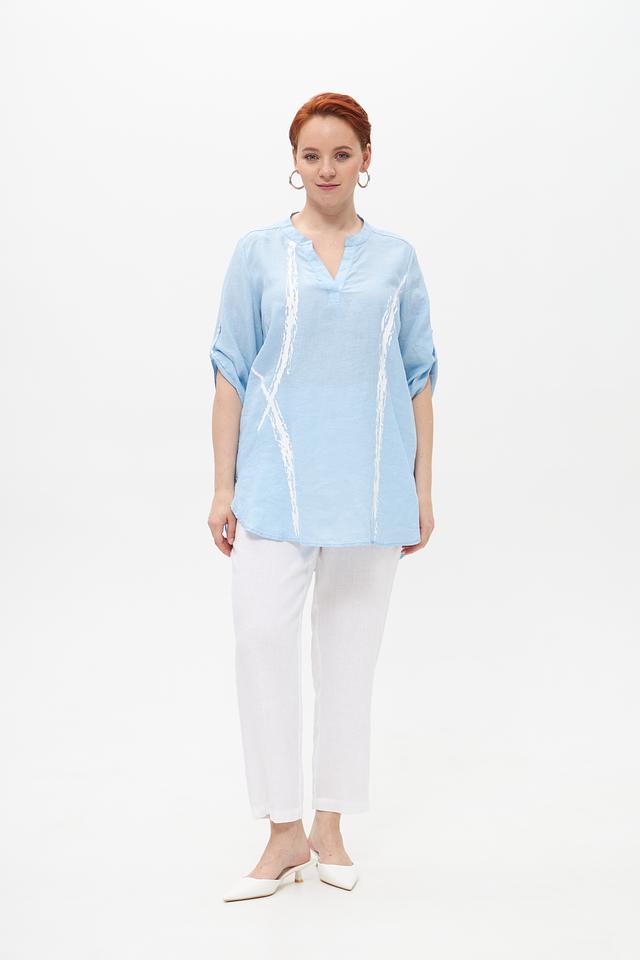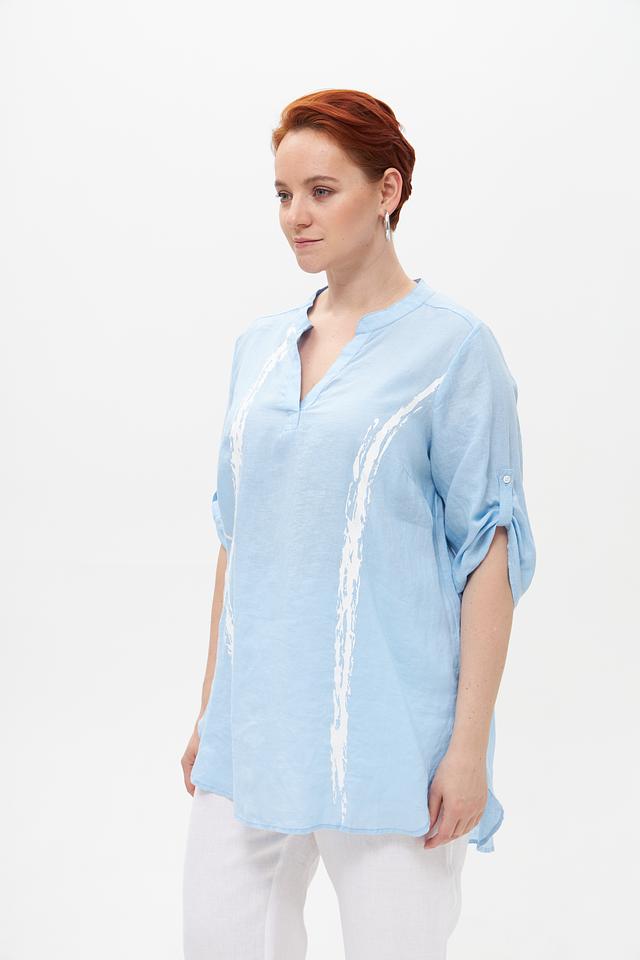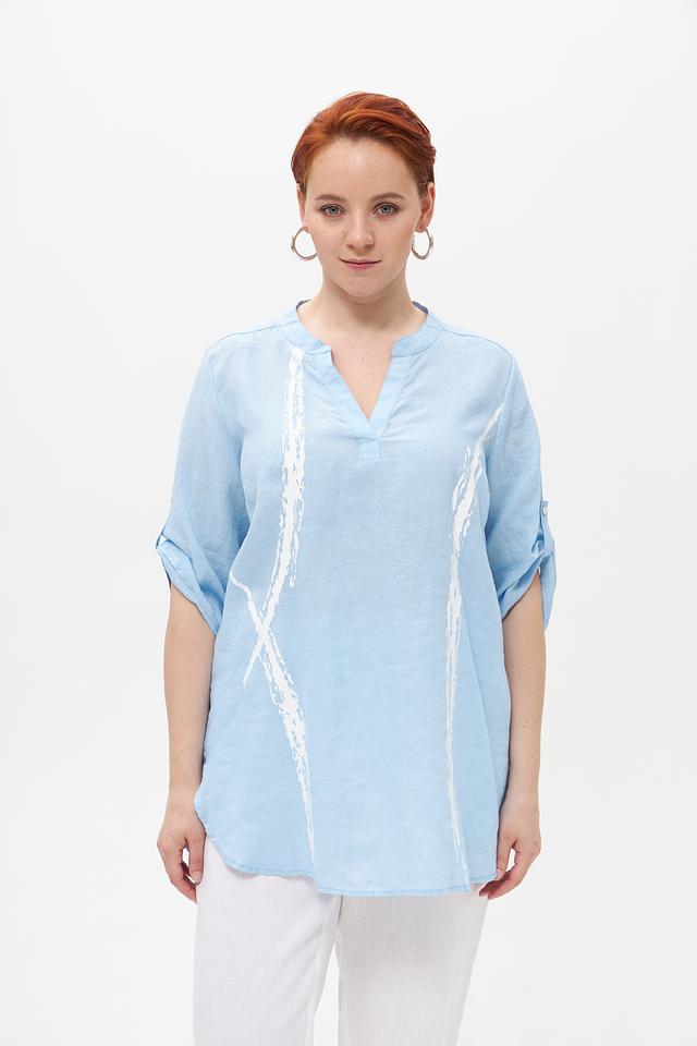 Голубая блузка от Doris Streich из 100% льна с оригинальным принтом. Лёгкий и дышащий материал обеспечивает комфорт в жаркую погоду. Идеальный выбор для создания стильного и непринуждённого образа. Состав: лен 100%