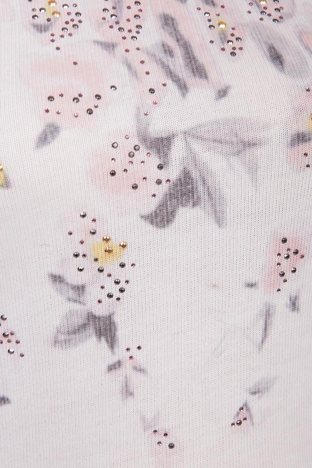 - Привлекательный дизайн: Оригинальный принт сочетает в себе анималистические мотивы в верхней части и нежный цветочный узор, плавно переходящий к низу. Дополнительный блеск придают изящные стразы, аккуратно расположенные среди цветочных элементов.