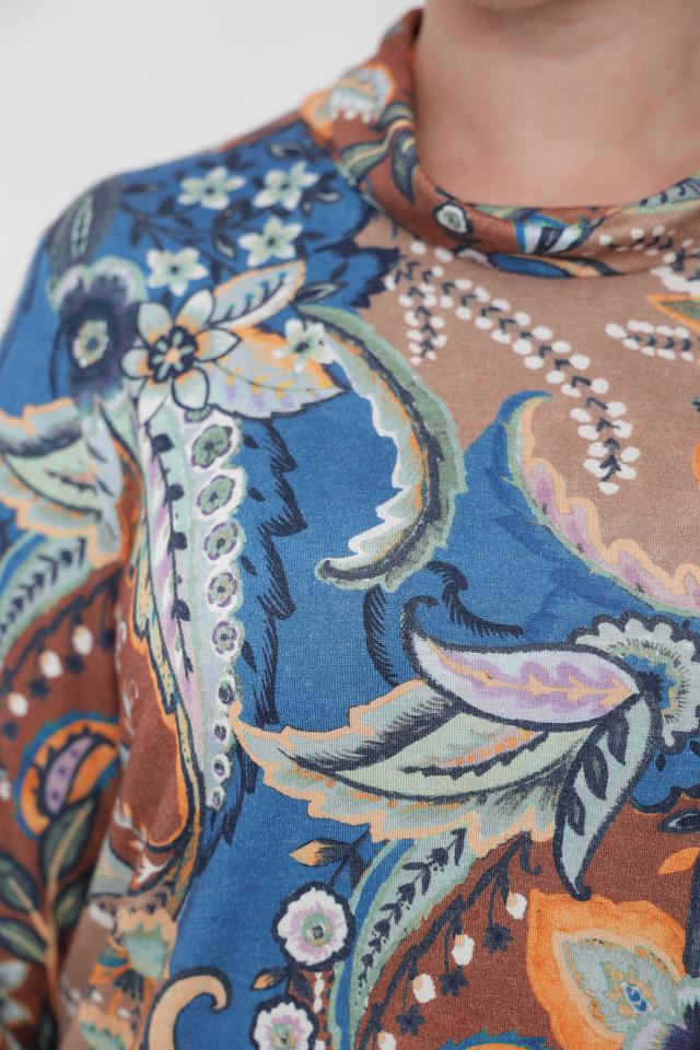 Эта блуза от Erfo – отличный выбор для создания элегантного и женственного образа. Блуза выполнена в синих тонах и украшена ярким цветочным принтом, который придает ей неповторимый шарм.