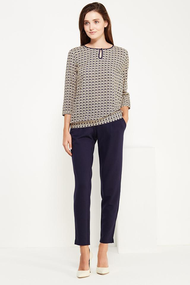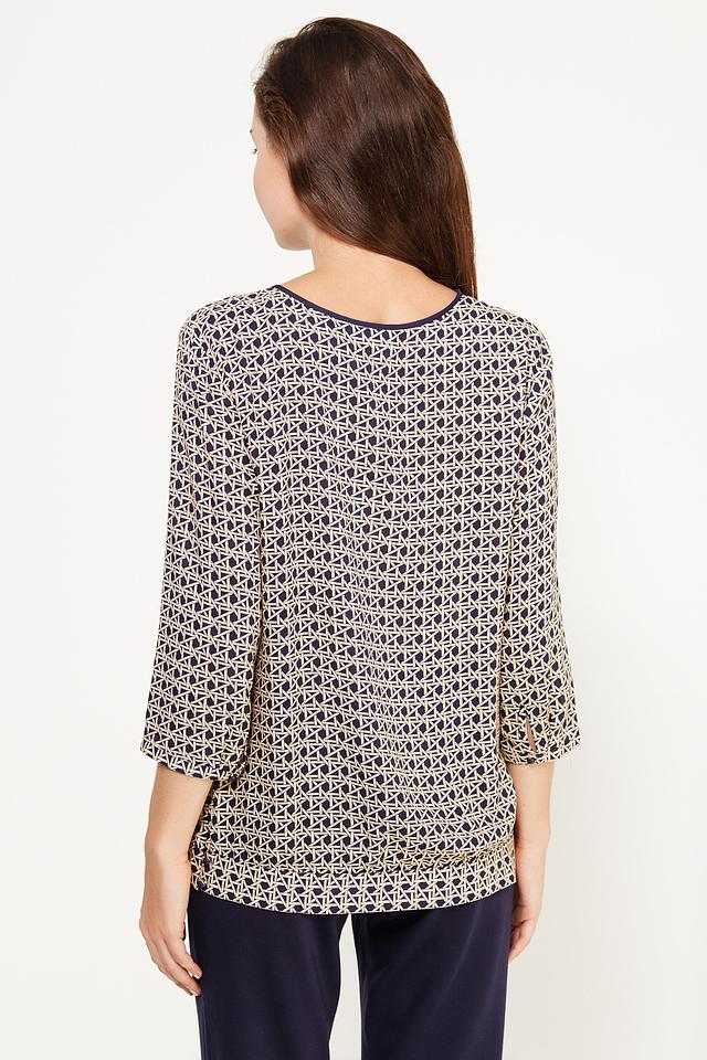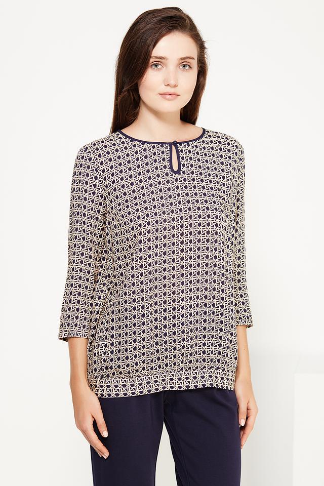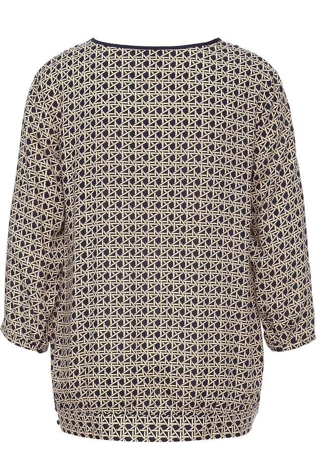 - Принт: Оригинальный геометрический узор в контрастных тонах добавляет изюминку и делает блузу заметной.