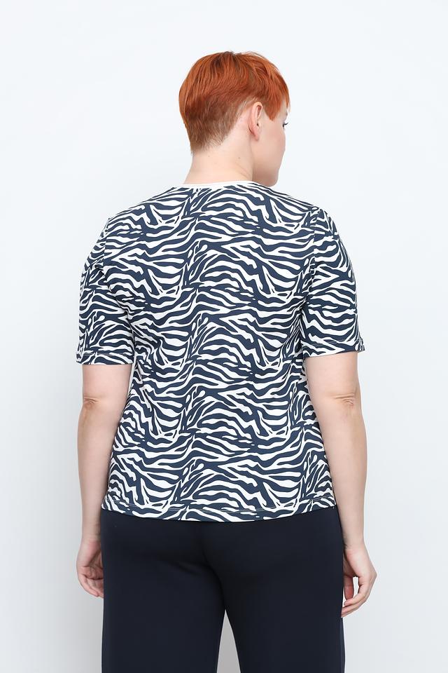 Модель имеет короткий рукав и свободный крой, что обеспечивает комфорт и свободу движений. Блуза выполнена из высококачественного материала, состоящего из 45% хлопка, 45% модала и 10% эластана. Такое сочетание обеспечивает мягкость, приятные тактильные ощущения и хорошую посадку по фигуре.