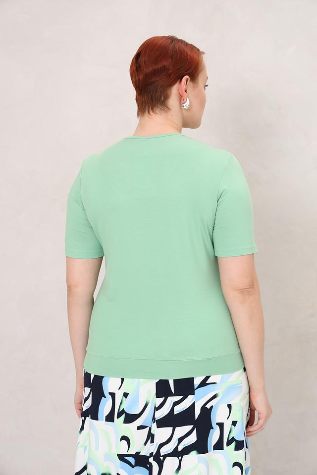 Мятная блуза Frank Walder – это стильная и элегантная модель с округлым вырезом и драпировкой. Блуза выполнена из мягкой и приятной к телу вискозы с добавлением эластана, что обеспечивает комфорт при носке и отличную посадку по фигуре. Состав: вискоза 93%, эластан 7%