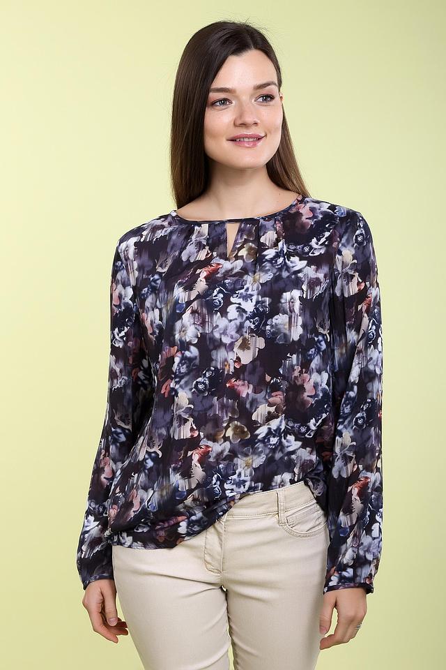 Блуза Gerry Weber темно-синего цвета с ярким цветочным принтом станет стильным дополнением вашего гардероба. Модель выполнена из легкой вискозы, имеет длинные рукава и V-образный вырез. Состав: вискоза 100%