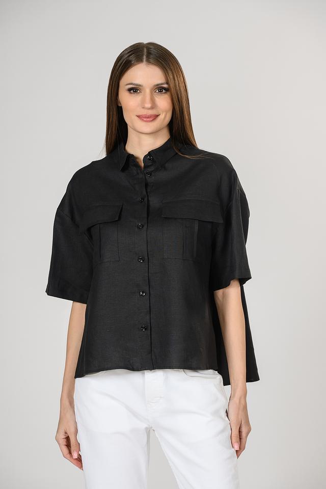 Чёрная блуза Giorgio Grati из 100% льна – стильное и комфортное решение для создания повседневных образов. Прямой крой и короткие рукава делают эту модель лёгкой и свободной, а накладные карманы добавляют функциональности. Состав: лен 100%