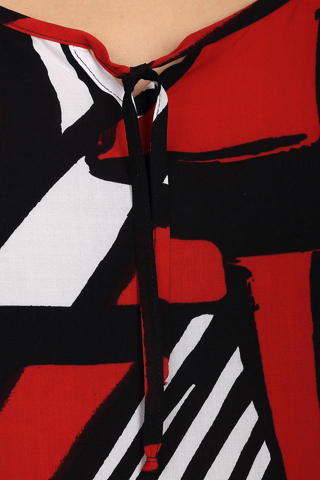 - Дизайн: Яркий геометрический принт в черно-красных цветах. Современный рисунок выгодно подчеркнет вашу индивидуальность и добавит выразительности в повседневный или вечерний образ.