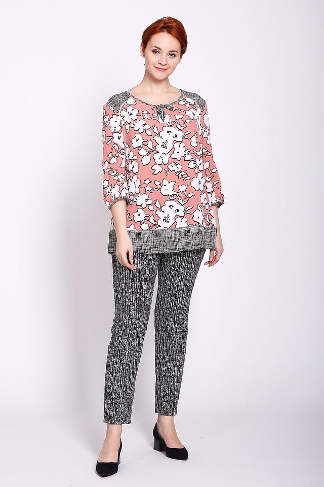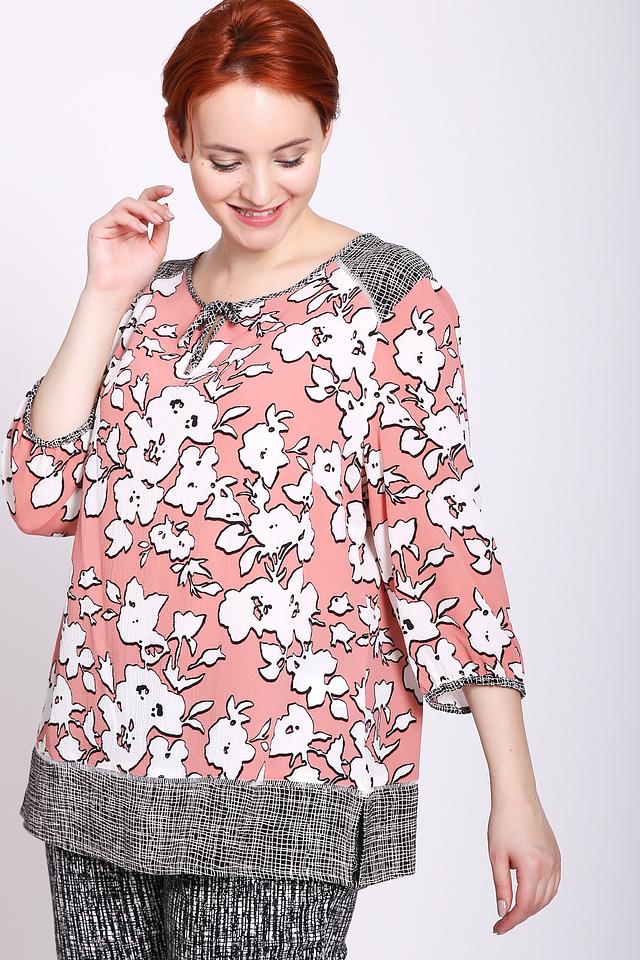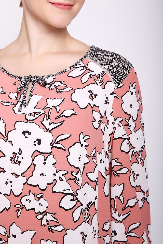 Эта блуза от Lebek станет отличным дополнением к вашему гардеробу. Она выполнена в нежном персиковом цвете и украшена ярким цветочным принтом, который придает ей романтичный вид.