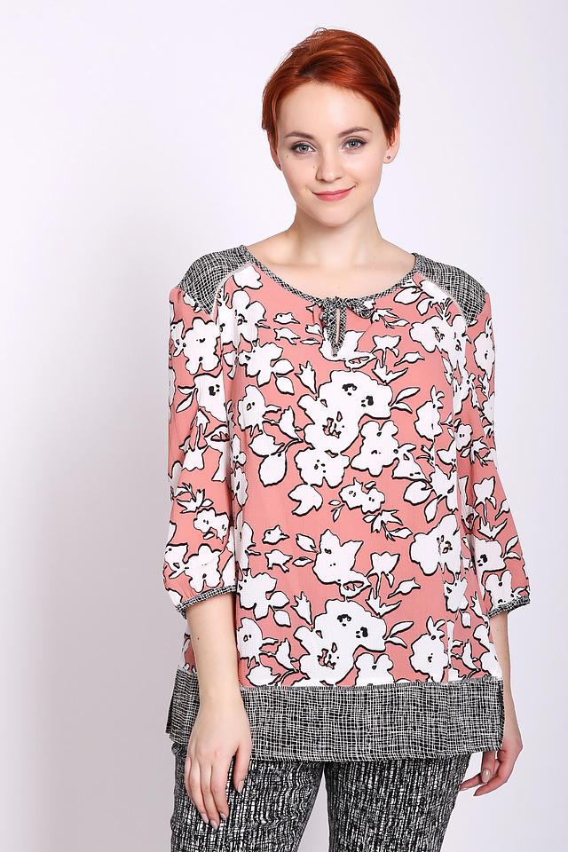 Блуза имеет свободный крой, который обеспечивает комфорт в носке, а рукава длиной 3/4 делают ее подходящей для любого времени года. Отделка в клетку на плечах и нижней части добавляет оригинальности и стиля.