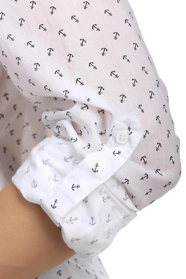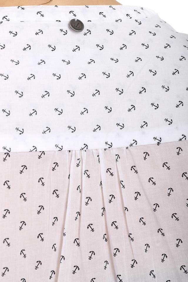 Белая блуза Lerros с мелким принтом в виде якорей станет отличным дополнением к вашему гардеробу. Модель выполнена из лёгкого хлопка и имеет длинные рукава, а также декоративную сборку на груди. Состав: хлопок 100%