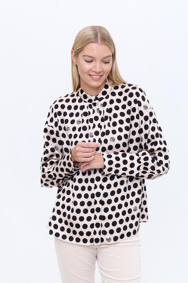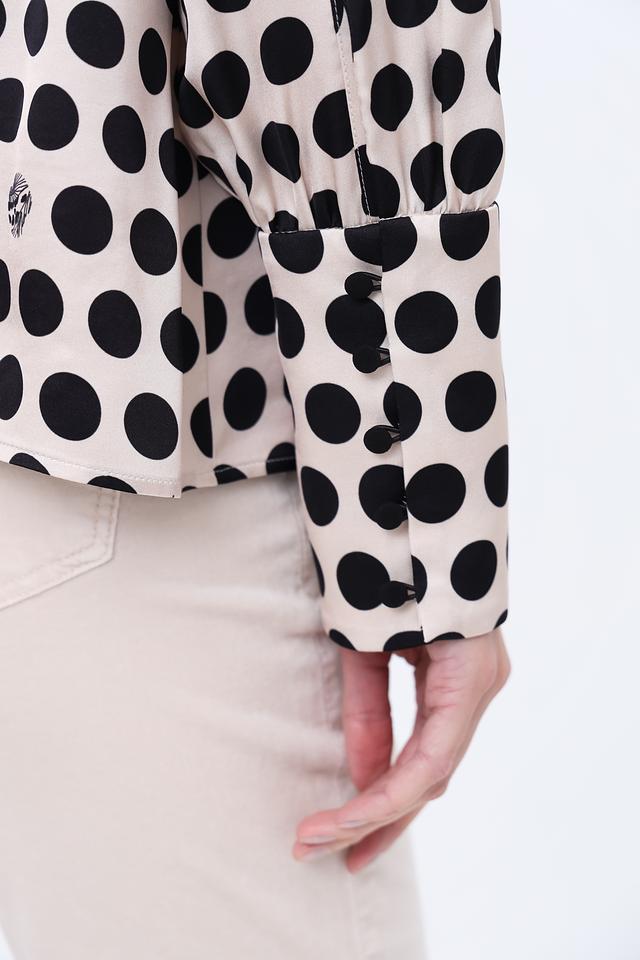 Блуза Marc Cain Collections цвета слоновой кости с чёрным горошком — стильная и элегантная модель с длинными рукавами и воротником-стойкой. Изготовлена из 100% вискозы, обеспечивающей комфорт и приятные ощущения при носке. Состав: вискоза 100%