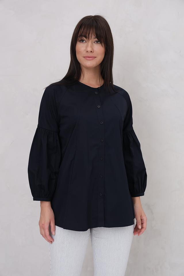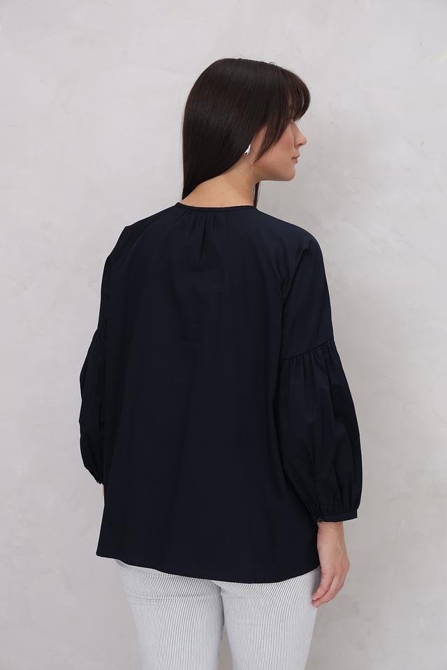 Стильная блуза Margittes темно-синего цвета с рукавами-фонариками и застежкой на пуговицы. Изготовлена из 100% хлопка, обеспечивающего комфорт и воздухопроницаемость. Идеальный выбор для создания элегантного и женственного образа. Состав: хлопок 100%