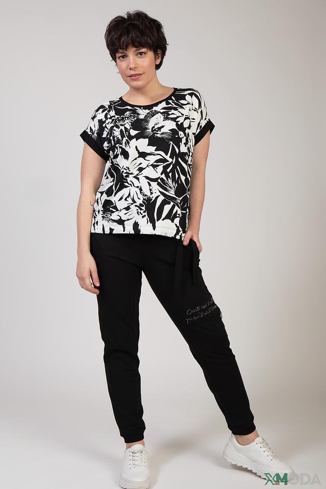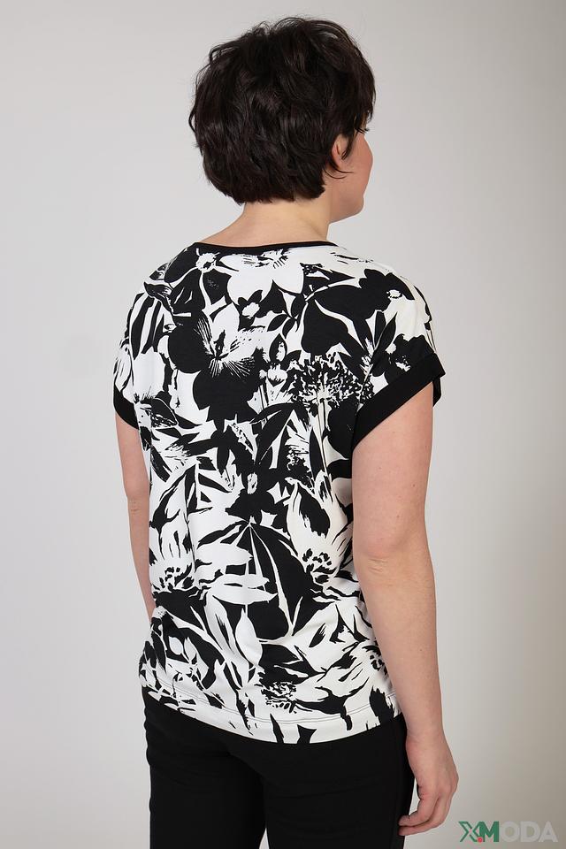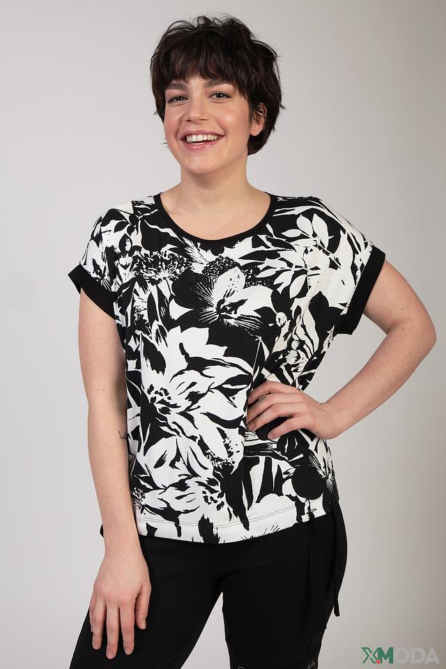 Блуза Monari чёрно-белого цвета с ярким цветочным принтом станет стильным дополнением к вашему гардеробу. Модель выполнена из мягкой вискозы с добавлением эластана, что обеспечивает комфорт в носке и отличную посадку по фигуре. Состав: вискоза 94%, эластан 6%