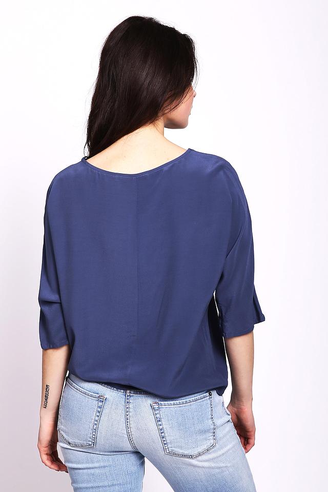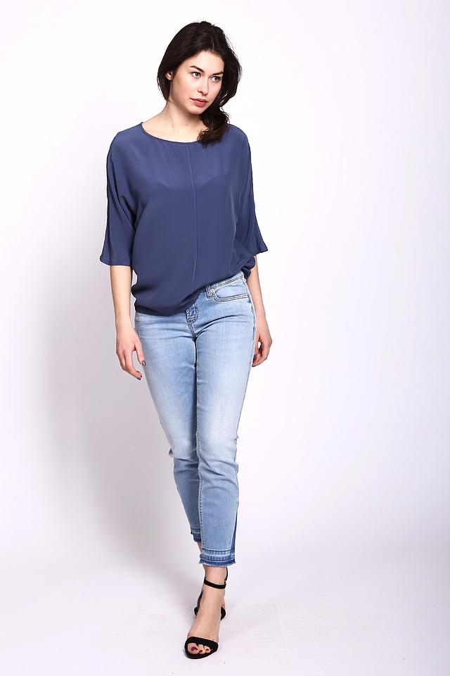 Блуза имеет свободный крой, который не сковывает движений и позволяет коже дышать. Особенностью модели являются рукава-фонарики, придающие образу романтичность и лёгкость. Круглый вырез горловины делает блузу универсальной и подходящей для различных типов фигуры.