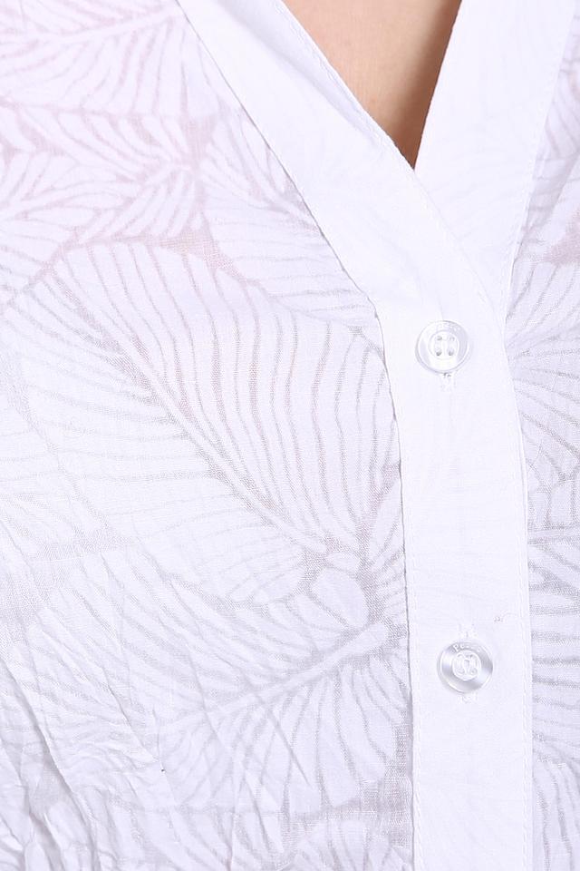 Белая блуза Pezzo с оригинальным узором в виде листьев станет отличным дополнением к вашему гардеробу. Модель выполнена из смесового хлопка, что обеспечивает комфорт и удобство в носке. Состав: хлопок 55%, полиэстер 45%