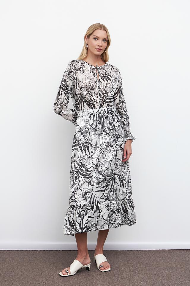 Эта блуза от Pezzo – отличный выбор для создания элегантного и непринужденного образа. Блуза выполнена в чёрно-белой цветовой гамме и украшена стильным принтом, изображающим листья.