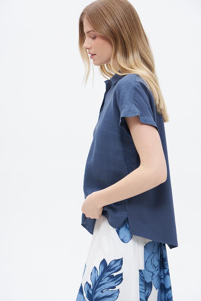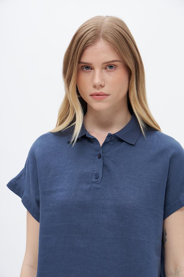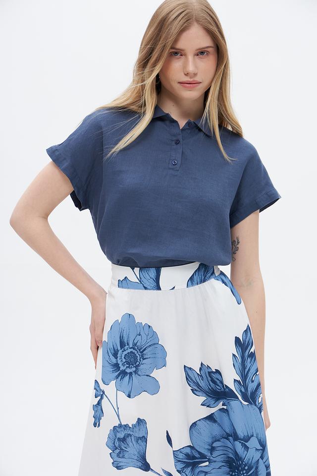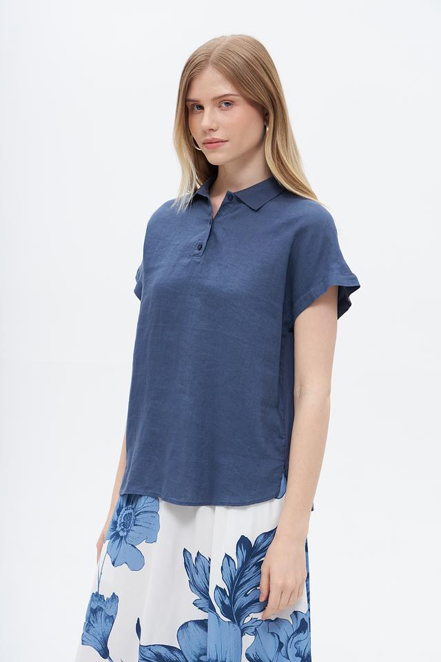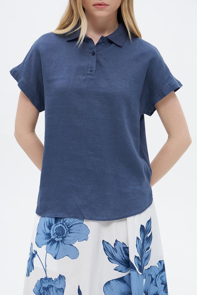 Синяя блуза из льна от Oui – это стильное и комфортное решение для повседневного образа. Модель с короткими рукавами и воротником-поло подчеркнет вашу индивидуальность и обеспечит свободу движений. Состав: лен 100%