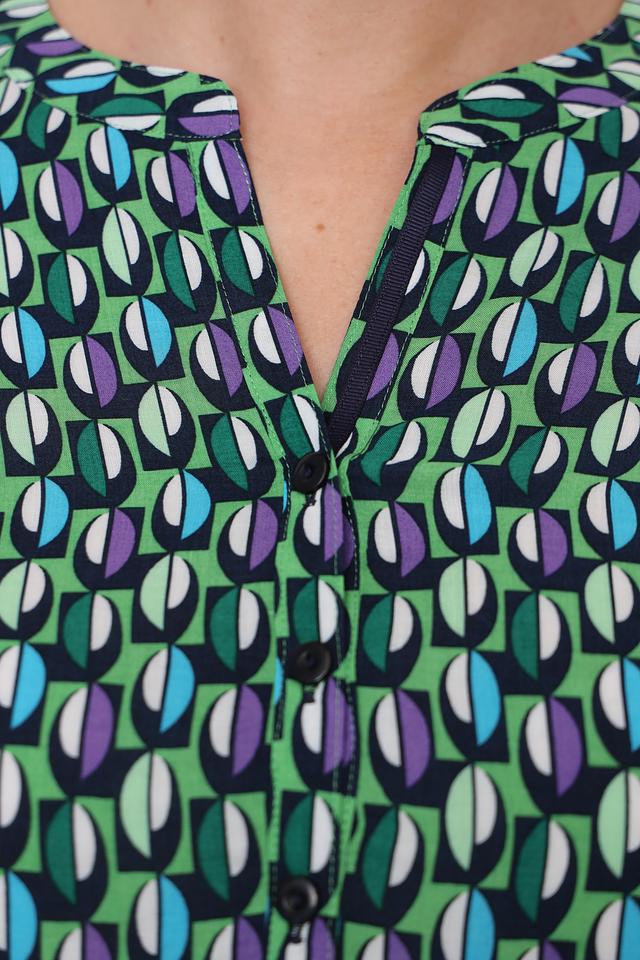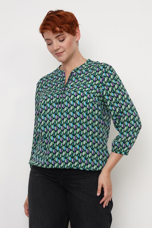 Блуза Rabe collection зеленого цвета с ярким геометрическим принтом станет отличным дополнением к вашему гардеробу. Модель выполнена из мягкой вискозы, что обеспечивает комфорт в носке и приятные ощущения на коже. Состав: вискоза 100%