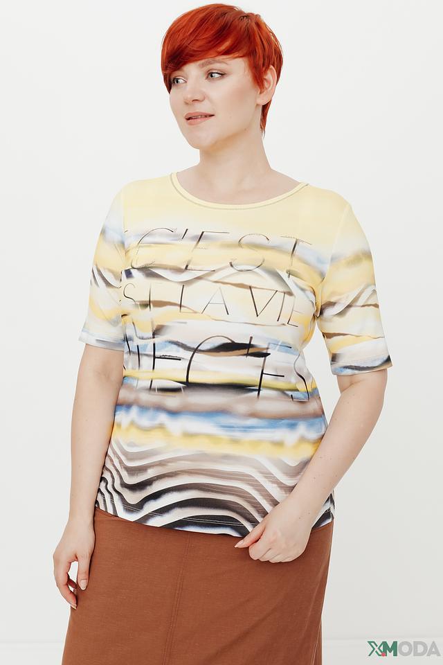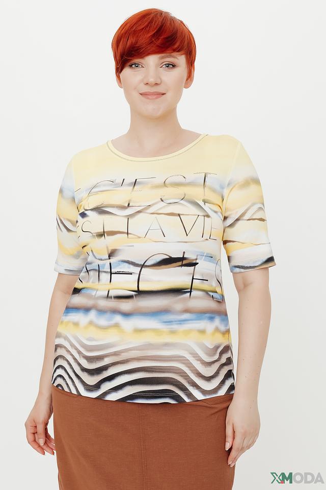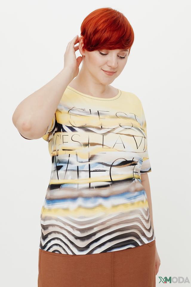 Блуза от Rabe collection светло-жёлтого цвета с оригинальным принтом и надписью "C'est la vie". Модель выполнена из мягкой вискозы с добавлением эластана, обеспечивающего комфортную посадку. Состав: вискоза 92%, эластан 8%