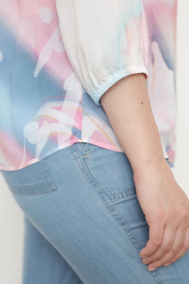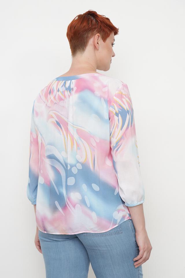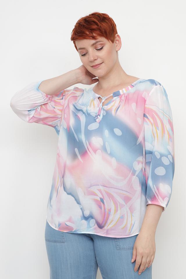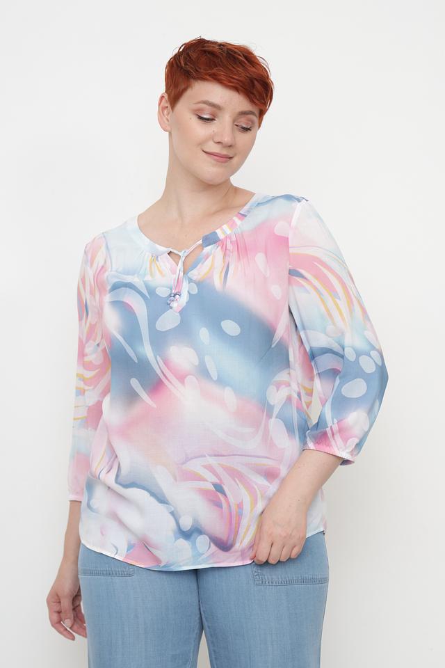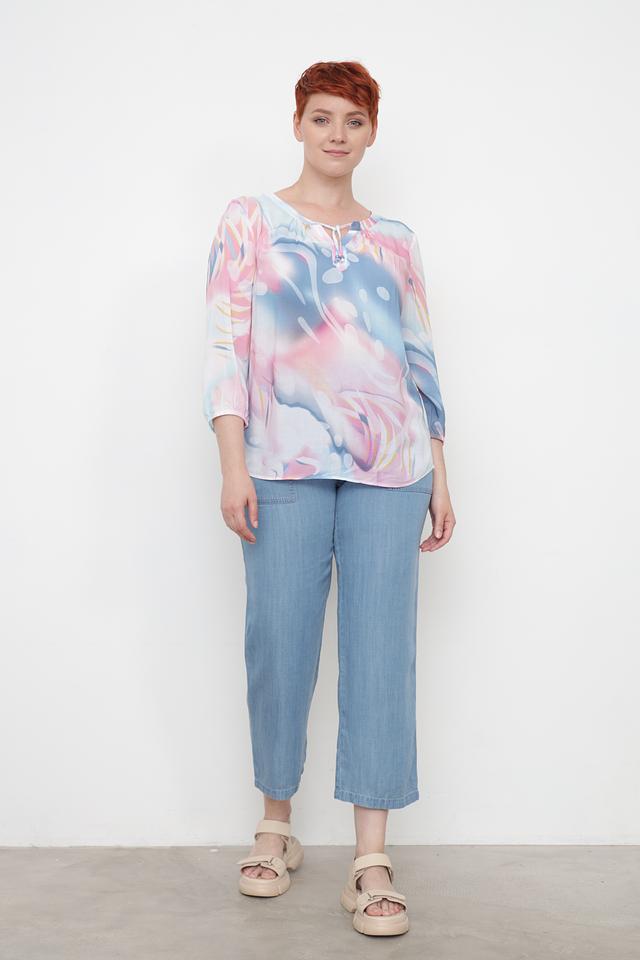 Рукава 3/4 с небольшим буффом придают блузе романтичный вид. Свободный крой не сковывает движений и подходит для любого типа фигуры. Блуза идеально сочетается с джинсами, брюками или юбками, создавая как повседневные, так и более нарядные образы.