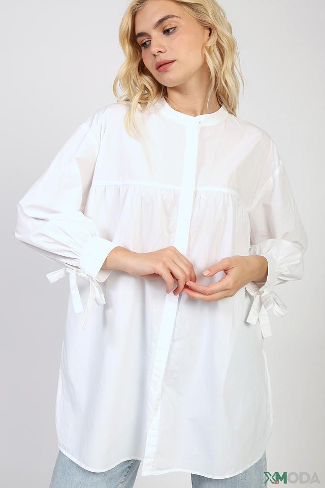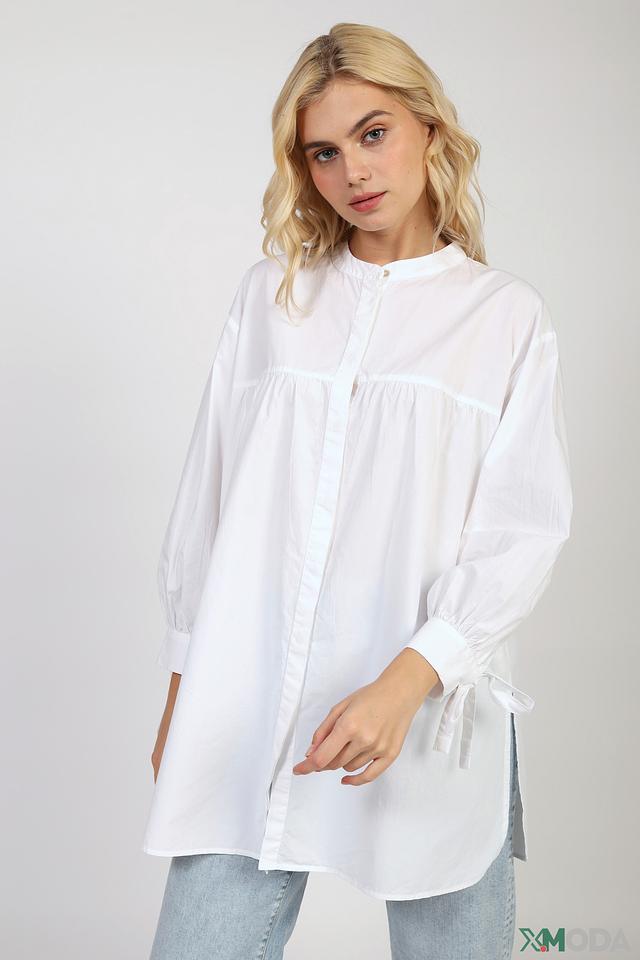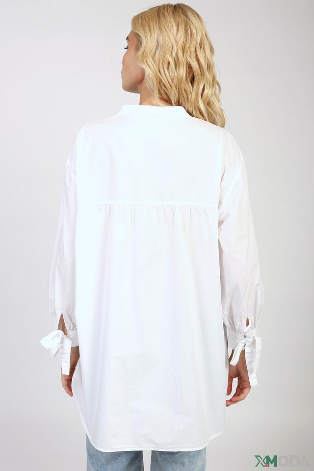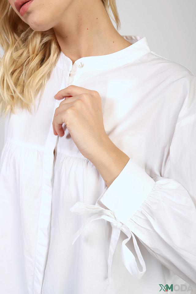 Белая блуза от Rich and Royal – это стильная и комфортная модель свободного кроя. Блуза выполнена из 100% хлопка, имеет рукава-фонарики с завязками и слегка удлиненный силуэт. Состав: хлопок 100%
