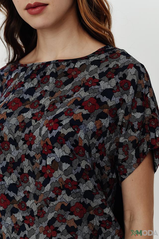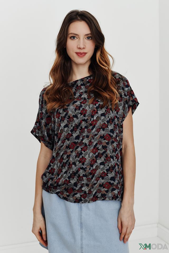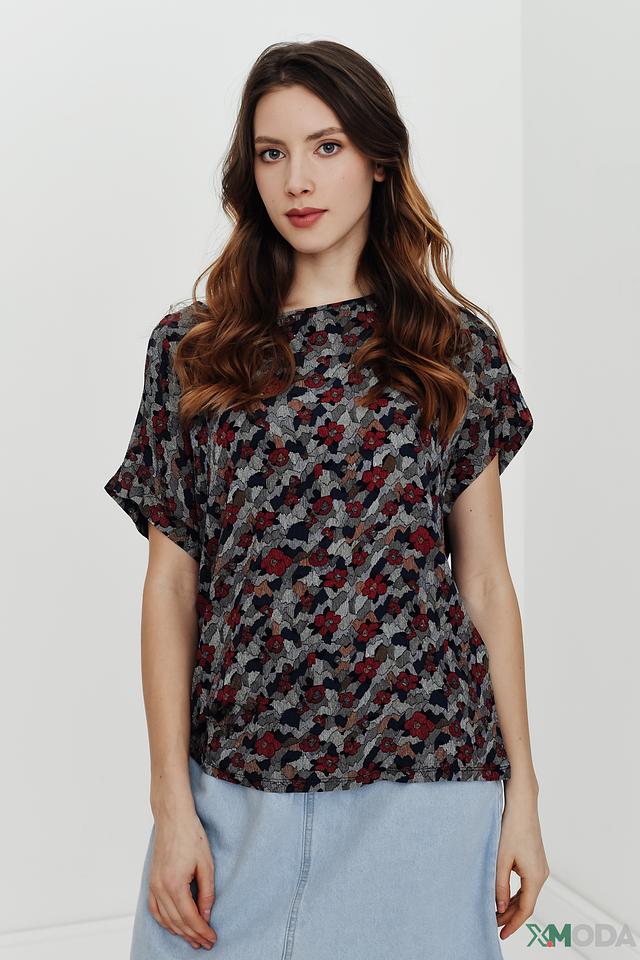 Модель имеет свободный крой и короткие рукава с небольшими сборками, что обеспечивает комфорт и свободу движений. Блуза выполнена из высококачественной вискозы с добавлением эластана, что делает ее приятной к телу и обеспечивает хорошую посадку.