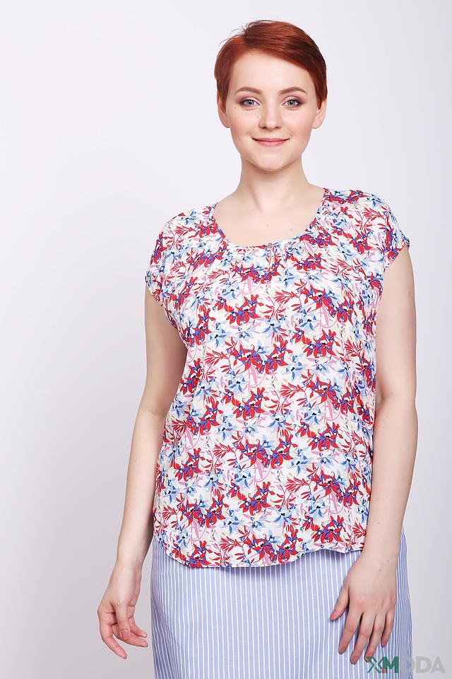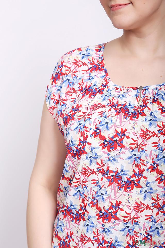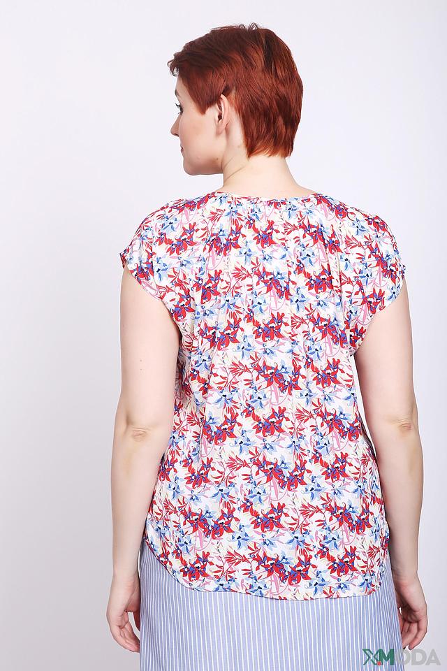 Основной цвет блузы – белый, но её украшает яркий и красочный цветочный принт, выполненный в красных, синих и голубых тонах. Такой рисунок добавит образу свежести и игривости. Блуза идеально сочетается с юбками, брюками и джинсами, позволяя создавать разнообразные стильные образы.
