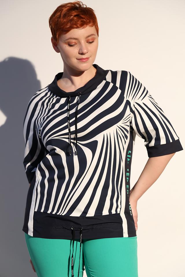 Эта блуза от Tuzzi станет ярким акцентом вашего образа. Выполнена в оригинальном дизайне с широкими полосами синего и белого цветов. Модель имеет свободный крой, который обеспечивает комфорт в носке.