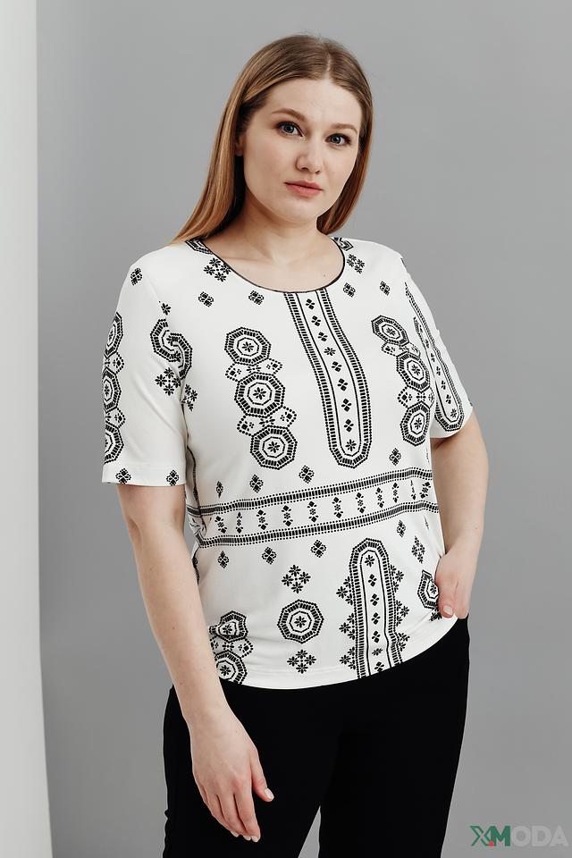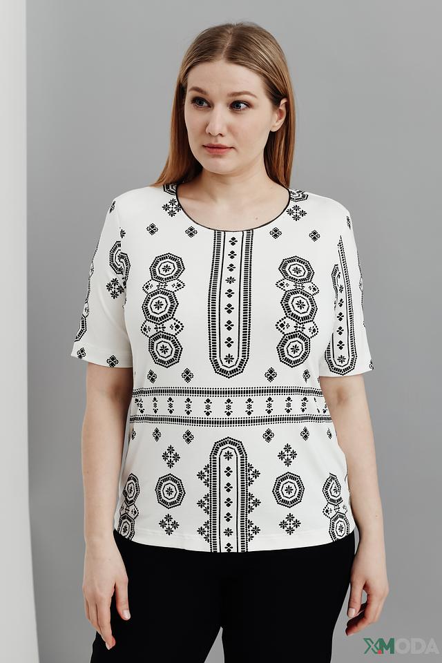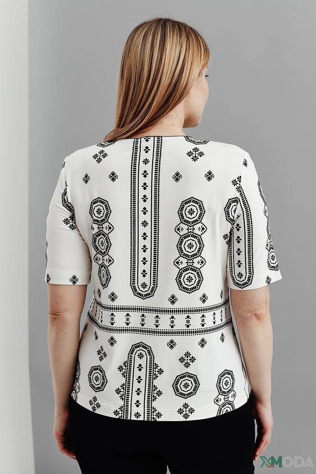Эта блуза от Eugen Klein станет прекрасным дополнением к вашему гардеробу. Выполнена в белом цвете с изысканным геометрическим орнаментом чёрного цвета, который придает ей особый шарм.