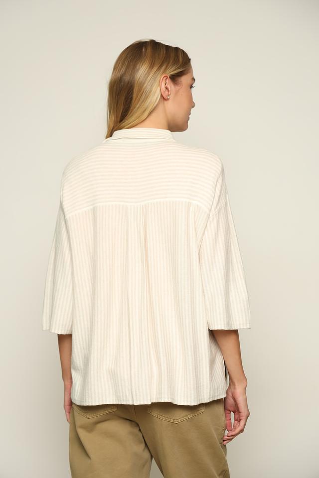 Эта рубашка от Oui станет прекрасным дополнением к вашему гардеробу. Она выполнена в бежевом цвете с вертикальной полоской, что придает ей свежий и современный вид.