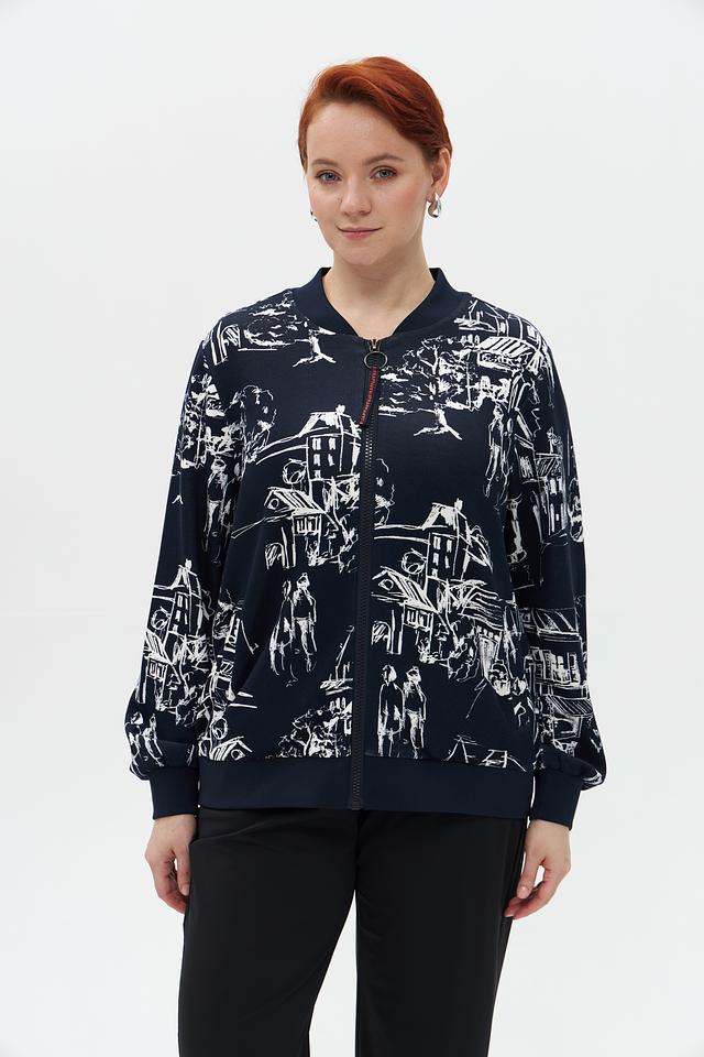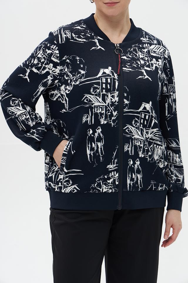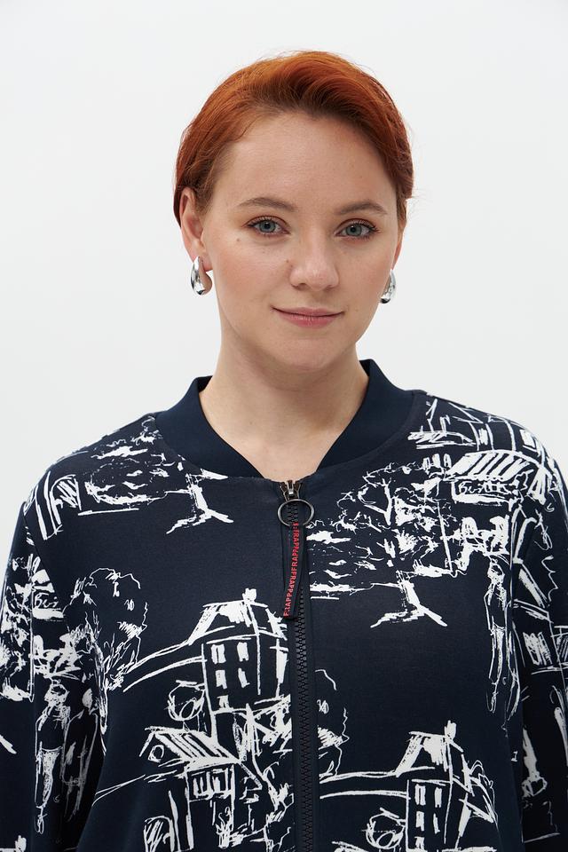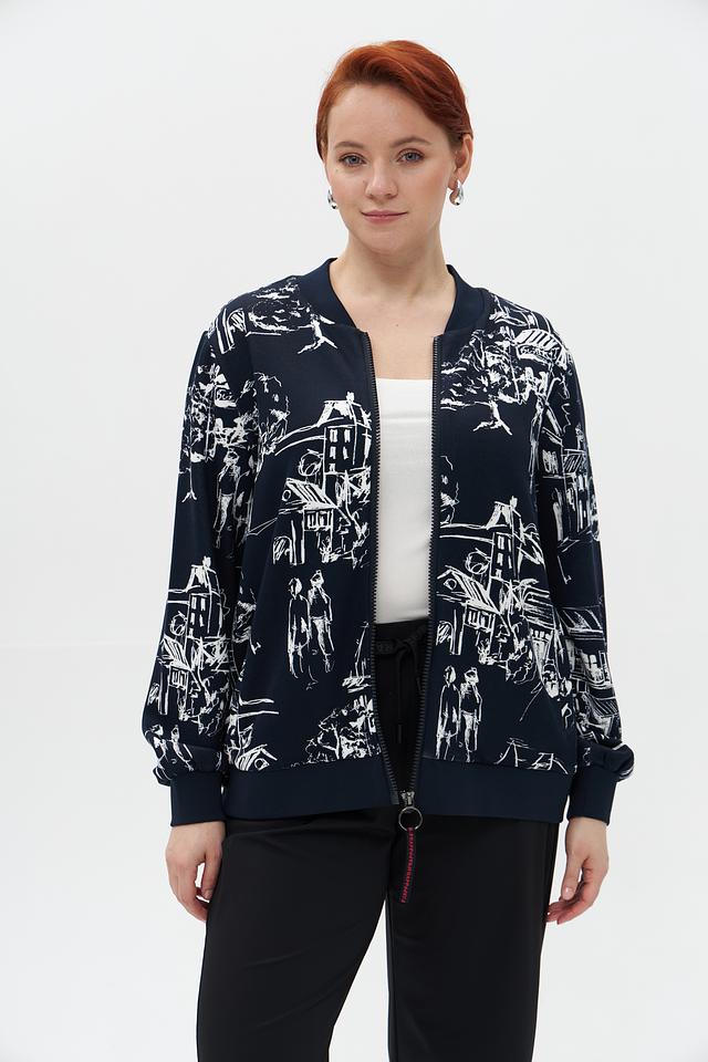 Жакет Frapp темно-синего цвета с оригинальным принтом – стильное и удобное решение для создания модных образов. Модель выполнена из мягкой вискозы с добавлением полиэстера и эластана, что обеспечивает комфорт в носке. Состав: вискоза 74%, полиэстер 19%, эластан 7%
