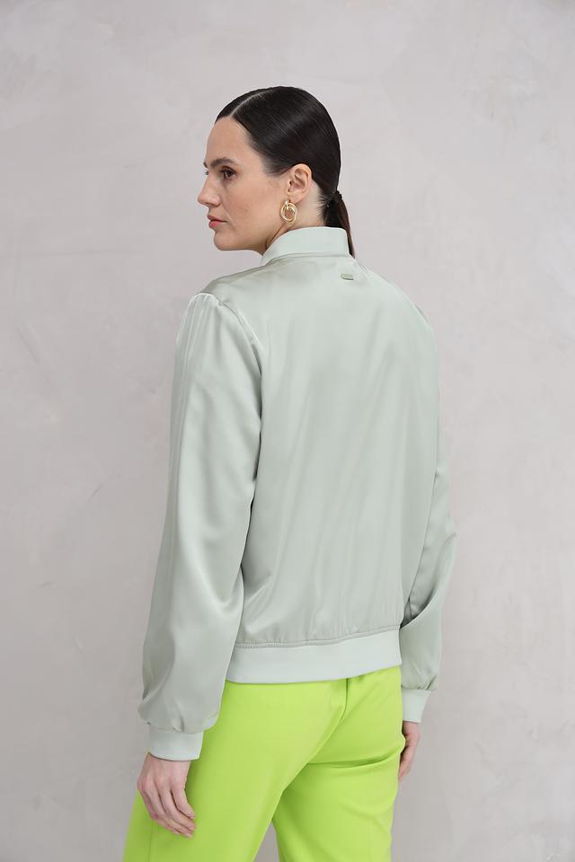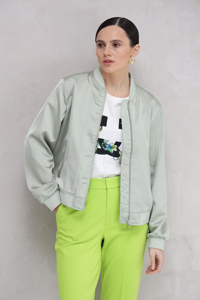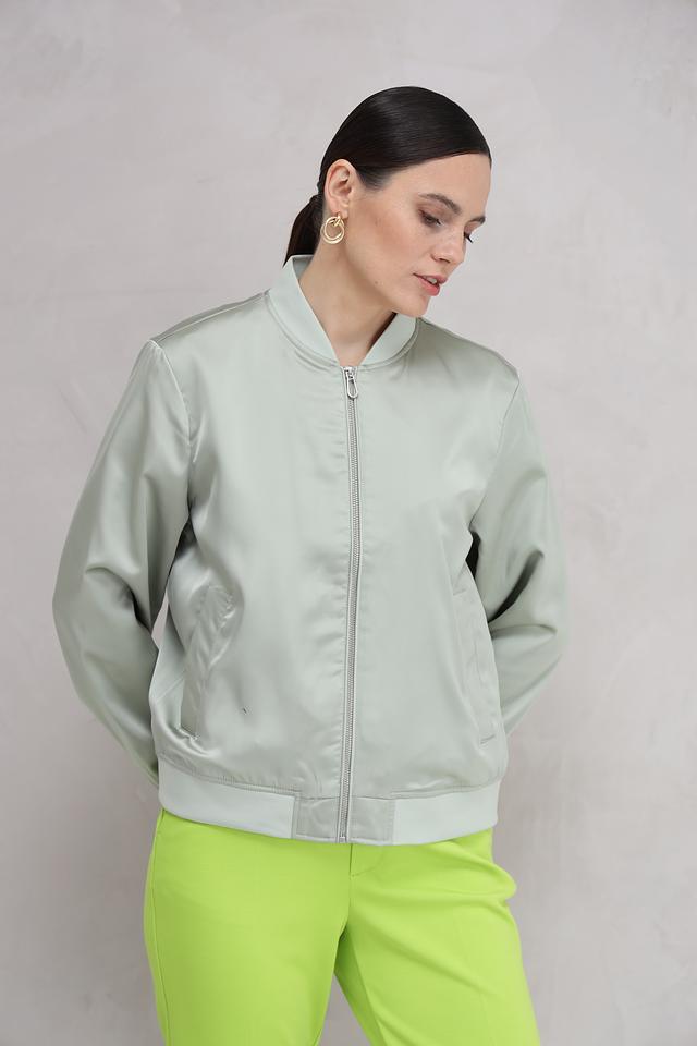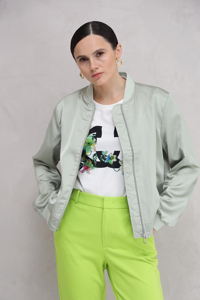 Этот жакет от Tom Tailor выполнен в актуальном стиле бомбер. Преобладающий цвет – нежный мятный, который освежает образ и легко сочетается с другими цветами.