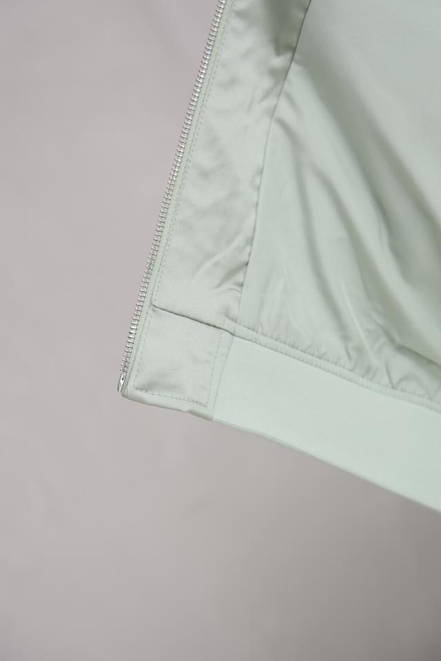 Модель выполнена из 100% полиэстера, что обеспечивает легкость и практичность в уходе. Жакет застегивается на молнию, имеет эластичные манжеты и воротник-стойку, что придает ему спортивный вид.